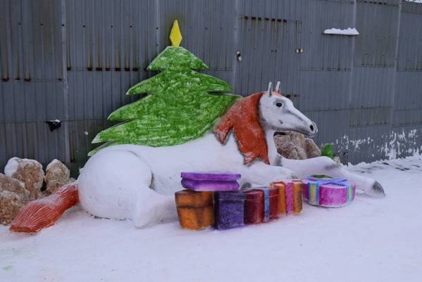 На территории закрытых учреждений развернулось настоящее новогоднее представление: снежные фигуры, ледяные ангелы, сверкающие ели и, конечно, символы Нового года - снеговики и лошади.