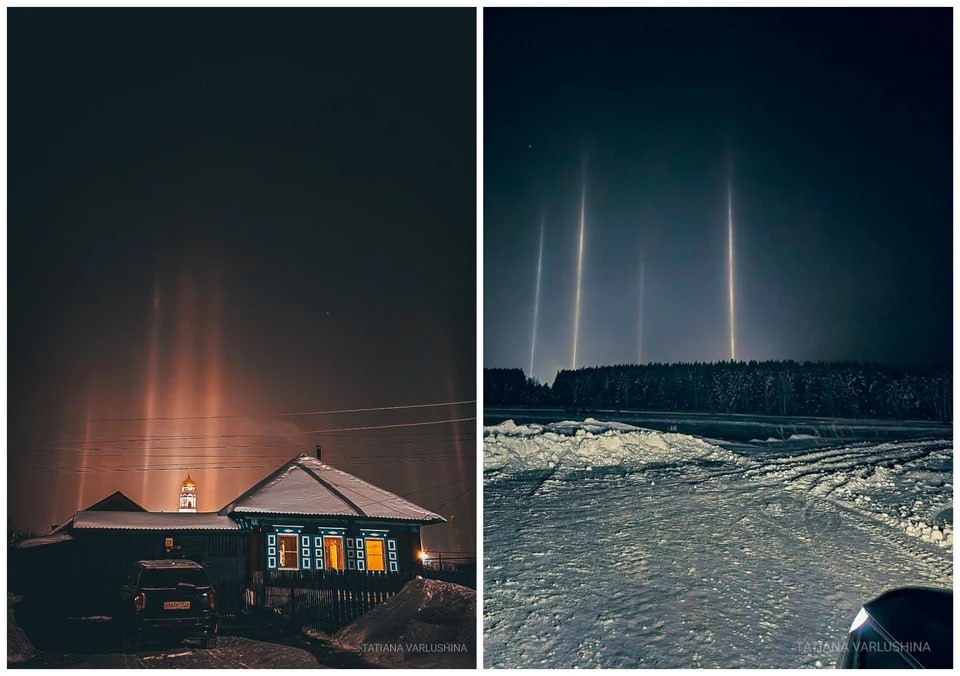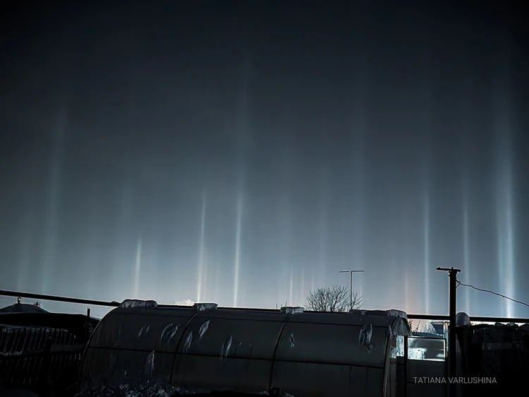 Жители Пласта Челябинской области в праздничные выходные заметили в вечернем небе необычное явление - яркие световые столбы. Они появились из-за мороза: свет отражался от крошечных ледяных кристаллов в воздухе. По словам очевидцев, такое зрелище в городе бывает редко.
