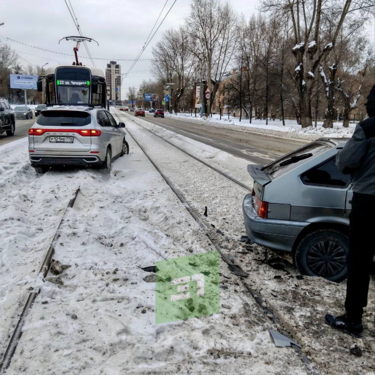На перекрестке Горького и Савина столкнулись две легковушки. Автомобили перекрыли пути.