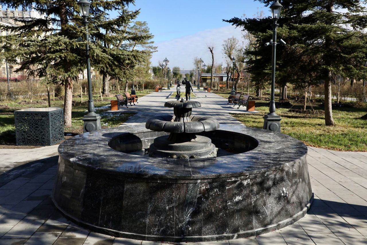 В сквере появилось видеонаблюдение, а возле танцевальной площадки установили звуковую акустику. Фонтаны отделали гранитом. Они будут работать по принципу замкнутого типа и воду не придется сливать в канализацию.
