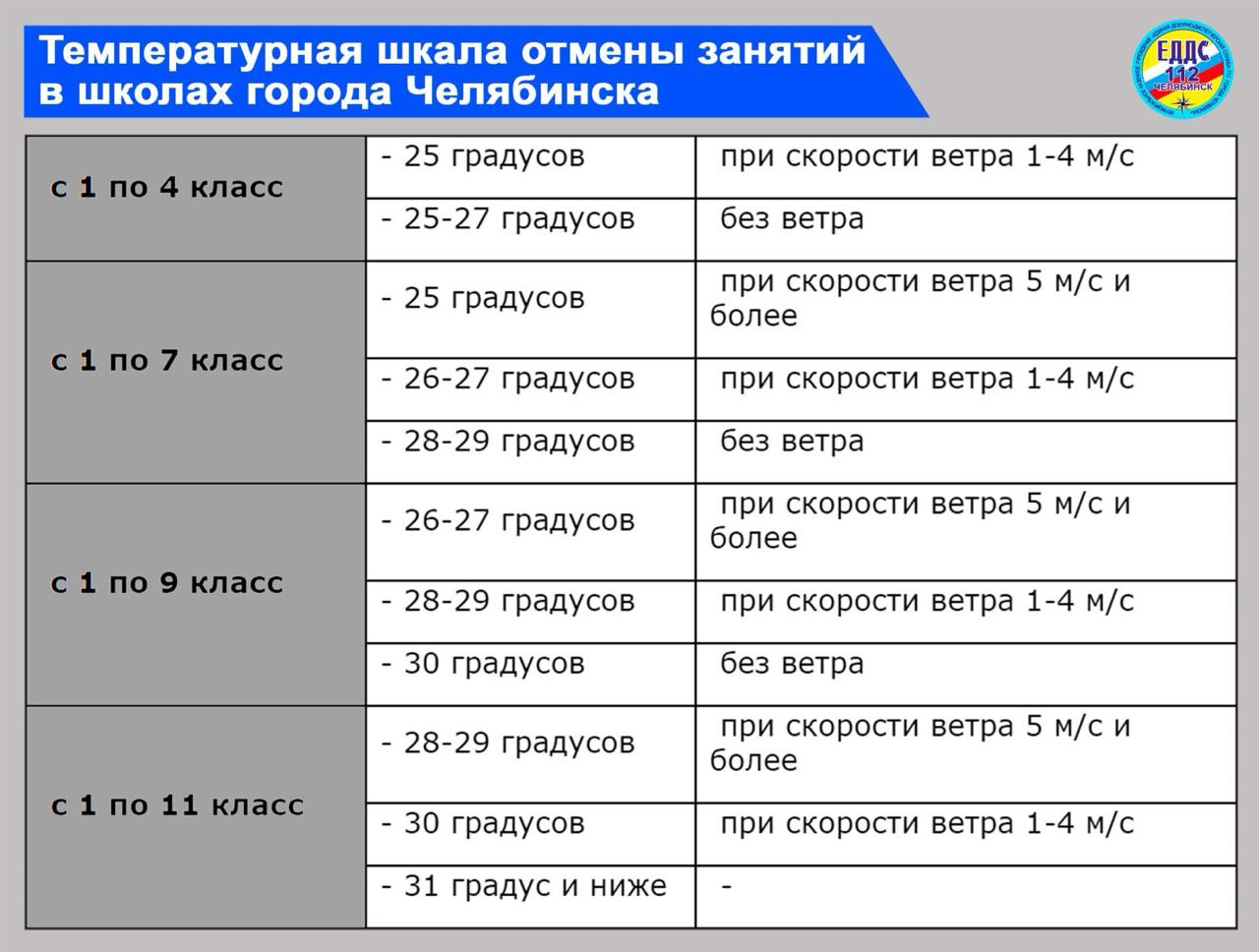 Аномально низкая температура воздуха в Челябинске с утра 15 января внесла коррективы в образовательный процесс. Столбики термометров в городе местами опустились ниже отметки в -31 градус, а к 8 утра упадут до -33, в связи с чем Комитет по делам образования принял решение об отмене уроков для всех учащихся сразу двух смен.