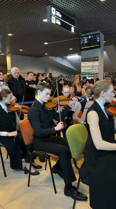 Перед матчем, который начнется уже в 16:00 в ледовой арене «Трактор», для болельщиков устроили настоящий концерт - прямо в фойе музыканты исполнили композиции классической музыки.