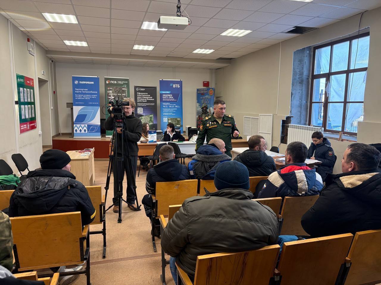 Инструктаж, знакомство с оружием и оказание первой медицинской помощи внимательно слушают добровольцы. Эти знания, уже через несколько месяцев могут спасти и им самим, и боевым товарищам жизнь. Эта лекция в пункте отбора на военную службу - первоначальная, более углубленная подготовка начнется после отправки.