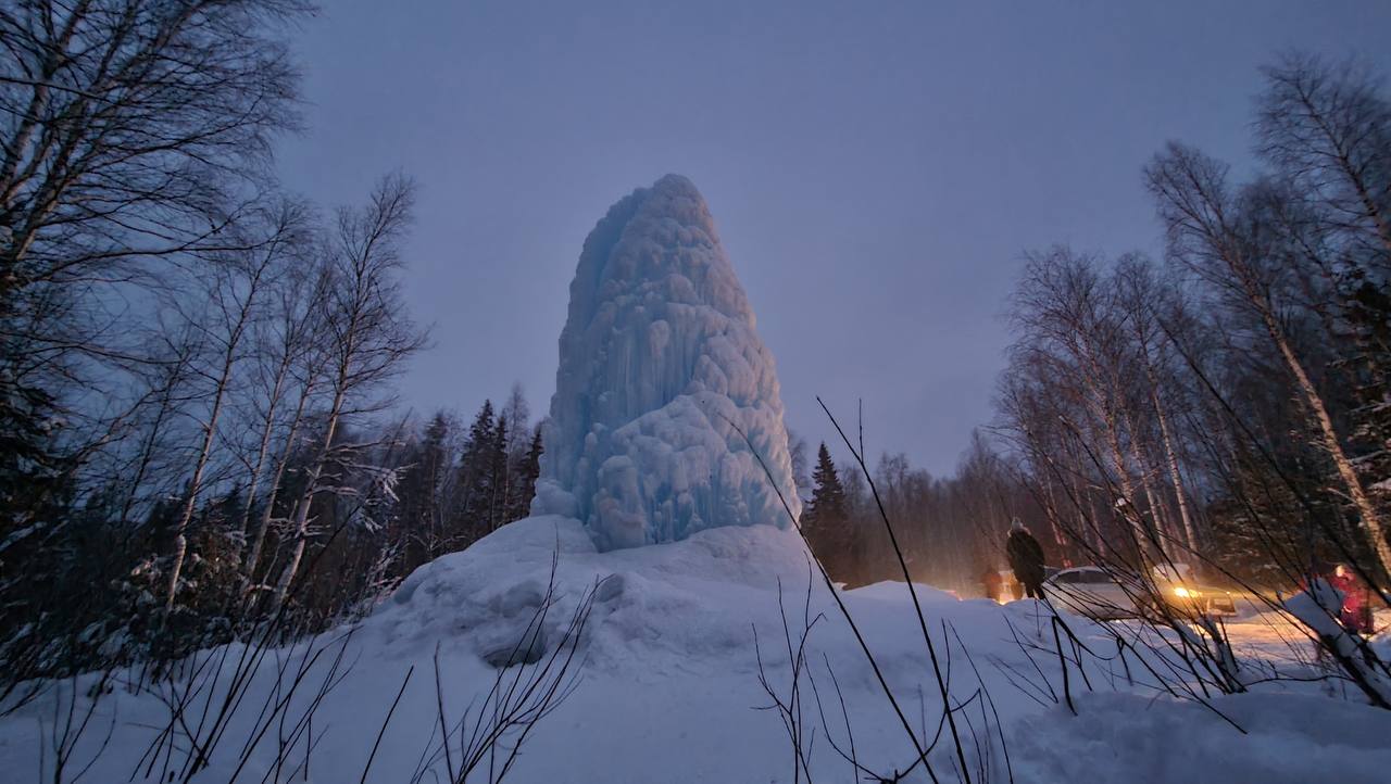 Ледяной фонтан на Зюраткуле достиг рекордных размеров
