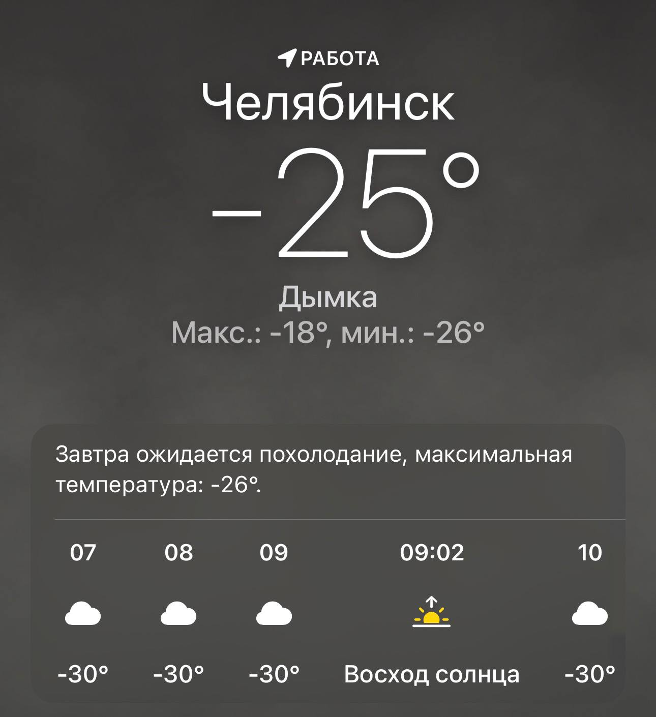 В Челябинске уже -25, к утру -30! Не выходите из дома без особой надобности, откажитесь от поездок, если есть такая возможность, не геройствуйте и обращайтесь за помощью, если замерзаете.
