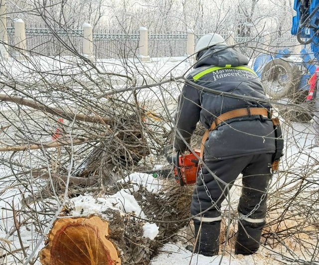 В Магнитогорске продолжают работы по сносу аварийных деревьев, выявленных специалистами в ходе обследования зеленых насаждений