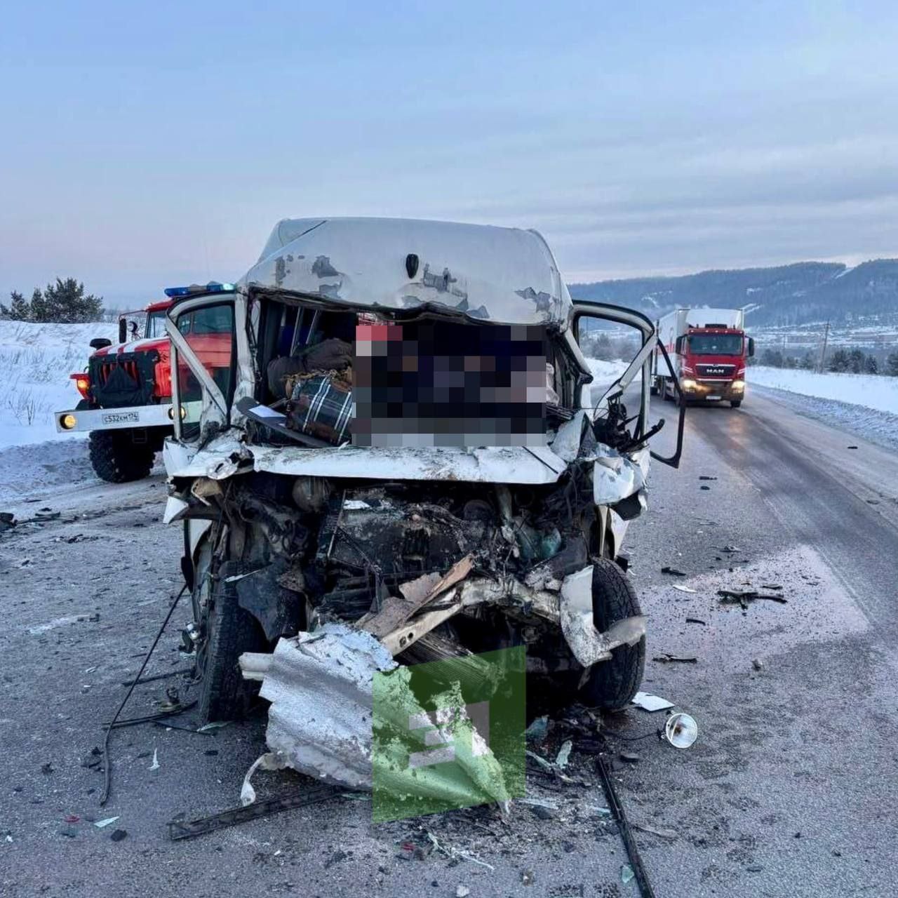 Авария произошла на 1589 км трассы в Ашинском округе. ГАИ региона: водитель микроавтобуса не выдержал дистанцию и столкнулся с грузовиком, ехавшим попутно.