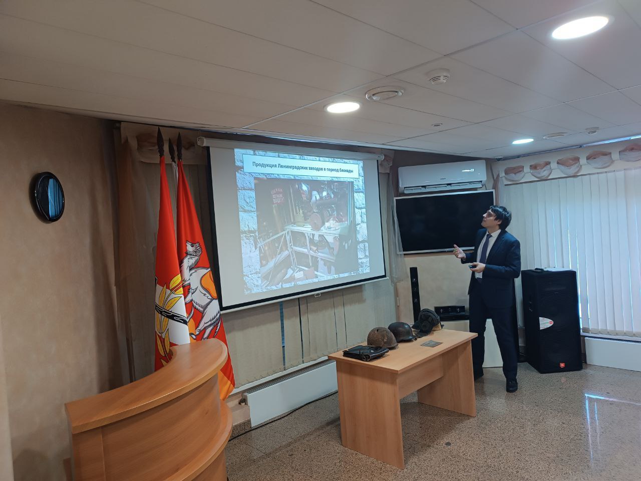 Сотрудники музея провели презентацию для студентов и гостей встречи о жизни времен блокадного Ленинграда, в перерывах мероприятие сопровождалось трогательными музыкальными номерами.