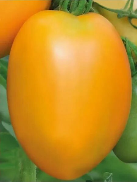 Плоды цилиндрические, крупные, массой примерно 200 г, с гладкой кожицей и ровной окраской в солнечно?желтый оттенок. В кисти обычно 3–5 завязей; сорт отличается равномерностью налива и хорошей сохранностью формы.