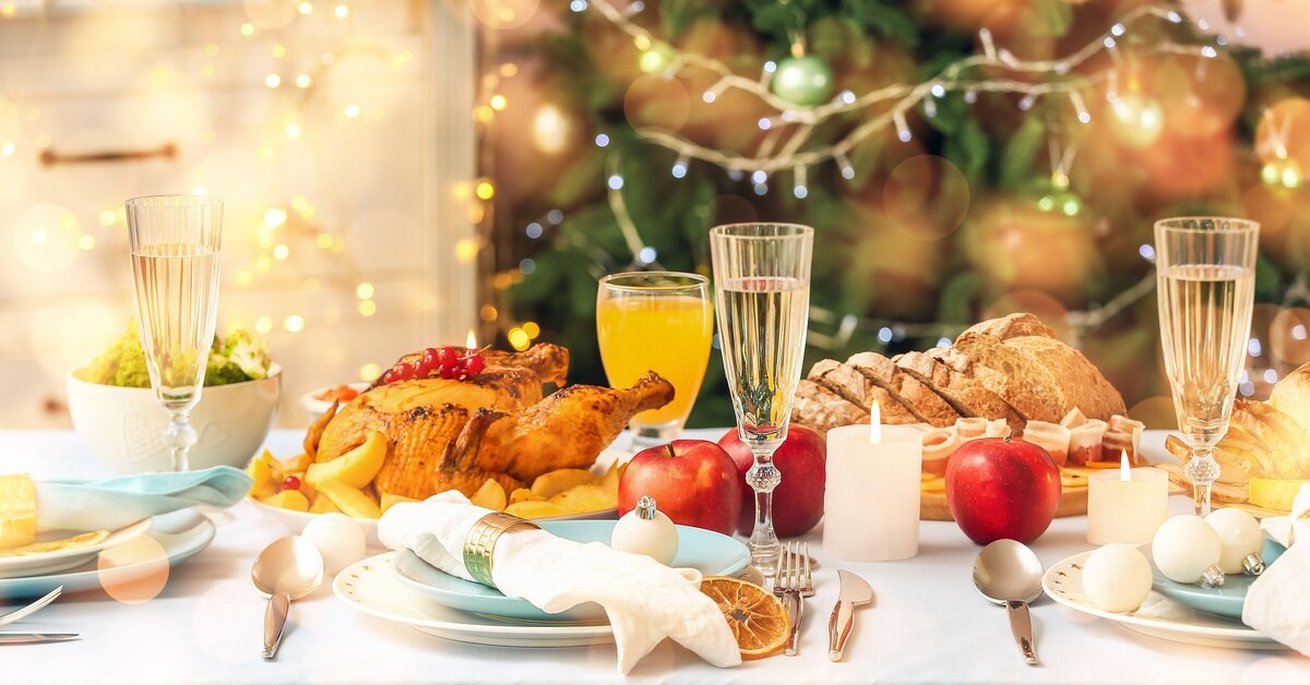 В предновогодний вечер мы ужинаем чуть позже обычного, с полноценным горячим блюдом. В этом году запекаем курицу в аэрогриле — простой выбор, который радует всех. На столе держатся овощи и зелень, помогающие организму держать баланс среди привычных праздничных блюд, таких как селёдка под шубой и оливье.