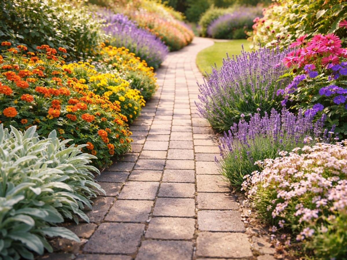 Однолетники позволяют регулярно обновлять образ дорожки: они не слишком разрастаются и помогают менять цветовую палитру. Алиссум создаёт ароматный ковёр, тонколистные бархатцы держат форму и работают как защита от вредителей, циннии добавляют яркость, настурция быстро закрывает почву. Такой набор смотрится гармонично и даёт гибкость в дизайне.