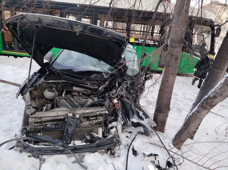 В Челябинске на улице Машиностроителей 29 января произошло ДТП. Столкнулись Volkswagen Tiguan и трамвай №22.