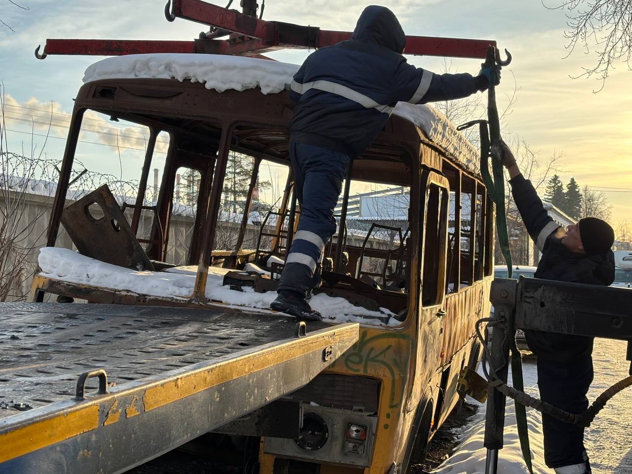 Территорию возле дома № 50 по Копейскому шоссе освободили от очень «уставшего» автобуса.