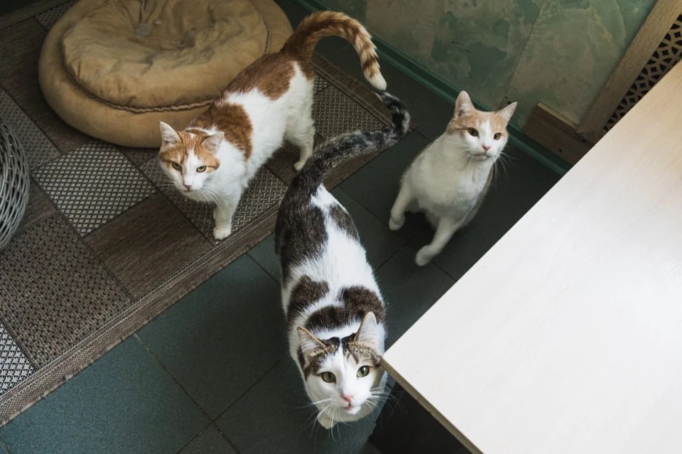 Ахиллес, Одиссей и Гелиос спят, играют и общаются с посетителями кафе, постепенно привыкая к людям. Забрать кота домои можно после нескольких визитов и общения с куратором. В котокафе надеются, что для каждого из троих скоро наи дется свои человек.