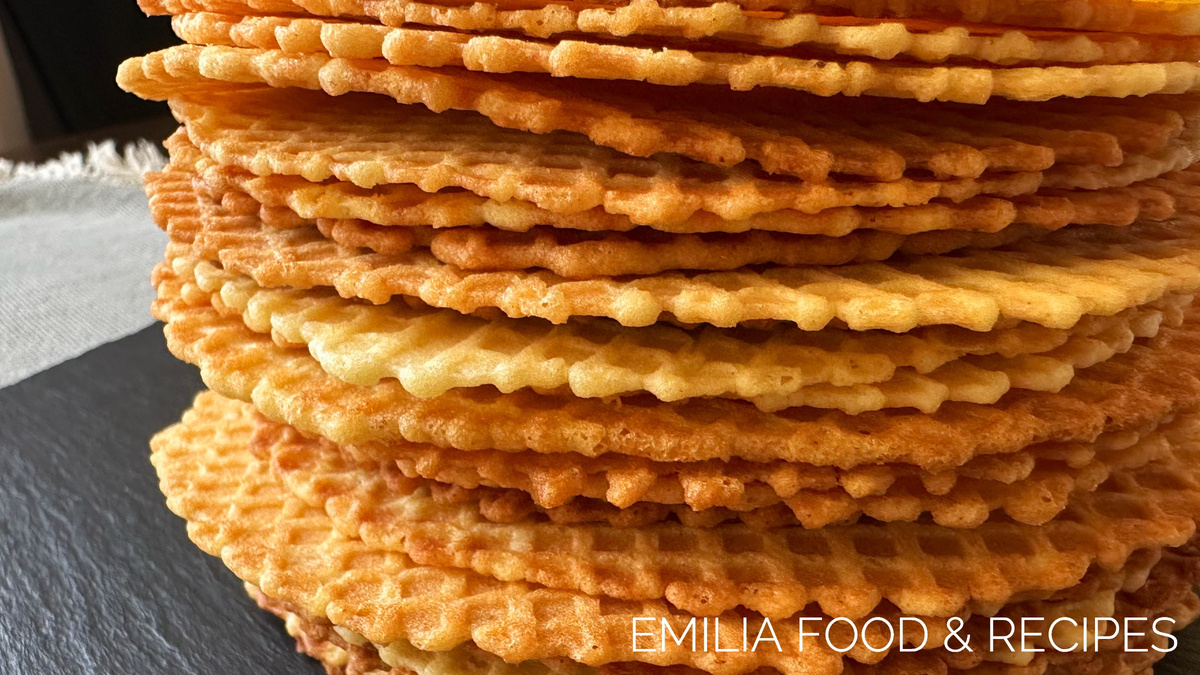 Приготовьте хрустящие вафли, которые прекрасно подойдут для десертов, рожков для мороженого или просто как сладкая закуска! Состав ингредиентов максимально прост: сливочное масло, сахар, мука, яйца и немного соли.