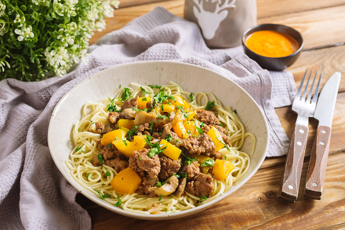 Лапша «Грибное лукошко» — одно из тех блюд, которое радует не только своим вкусом, но и простотой приготовления. Этот рецепт включает в себя яичную лапшу, аппетитные шампиньоны и болгарский перец, а в качестве пикантного акцента используется знаменитый тунисский соус Харисса, который идеально дополнит все составляющие.