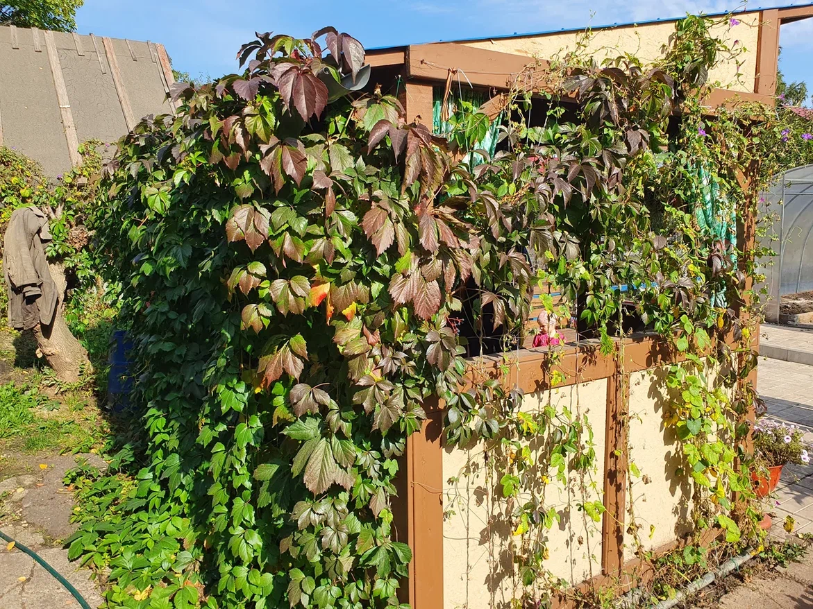 Этот вид растения известен своей способностью быстро создавать тень и прекрасно переносить морозы. Но его присоски могут повредить штукатурку и застрять в трещинах. Птицы разносят его семена, благодаря чему новые побеги появляются в непредсказуемых местах. Если не следить за ним, девичий виноград может нанести ущерб другим растениям и конструкциям.