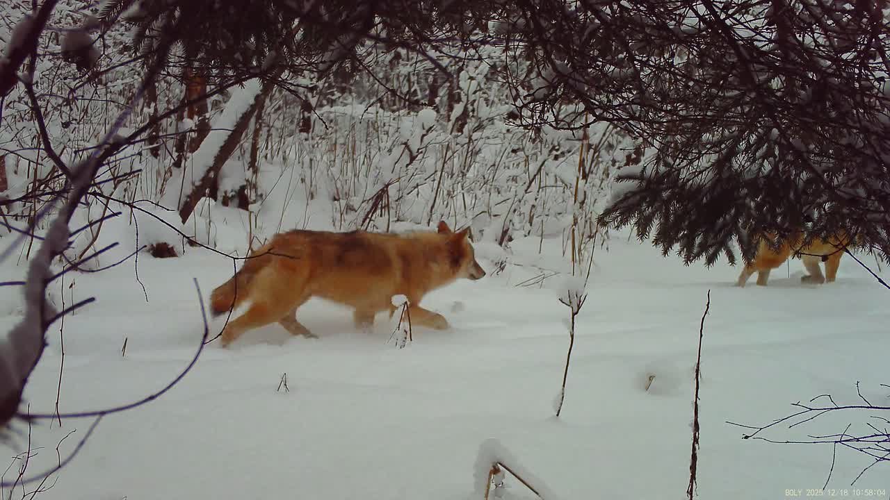 Видеоловушка сняла стаю необычно рыжих волков в челябинском нацпарке