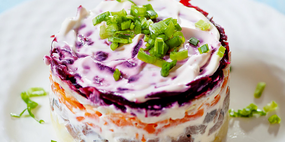 История «Сельди под шубой» началась в начале XX века, и с тех пор у каждой хозяйки появилось множество собственных секретов для его приготовления. Однако основные компоненты остаются неизменными: филе сельди, картофель, морковь, свёкла, яйца и, конечно же, майонез.