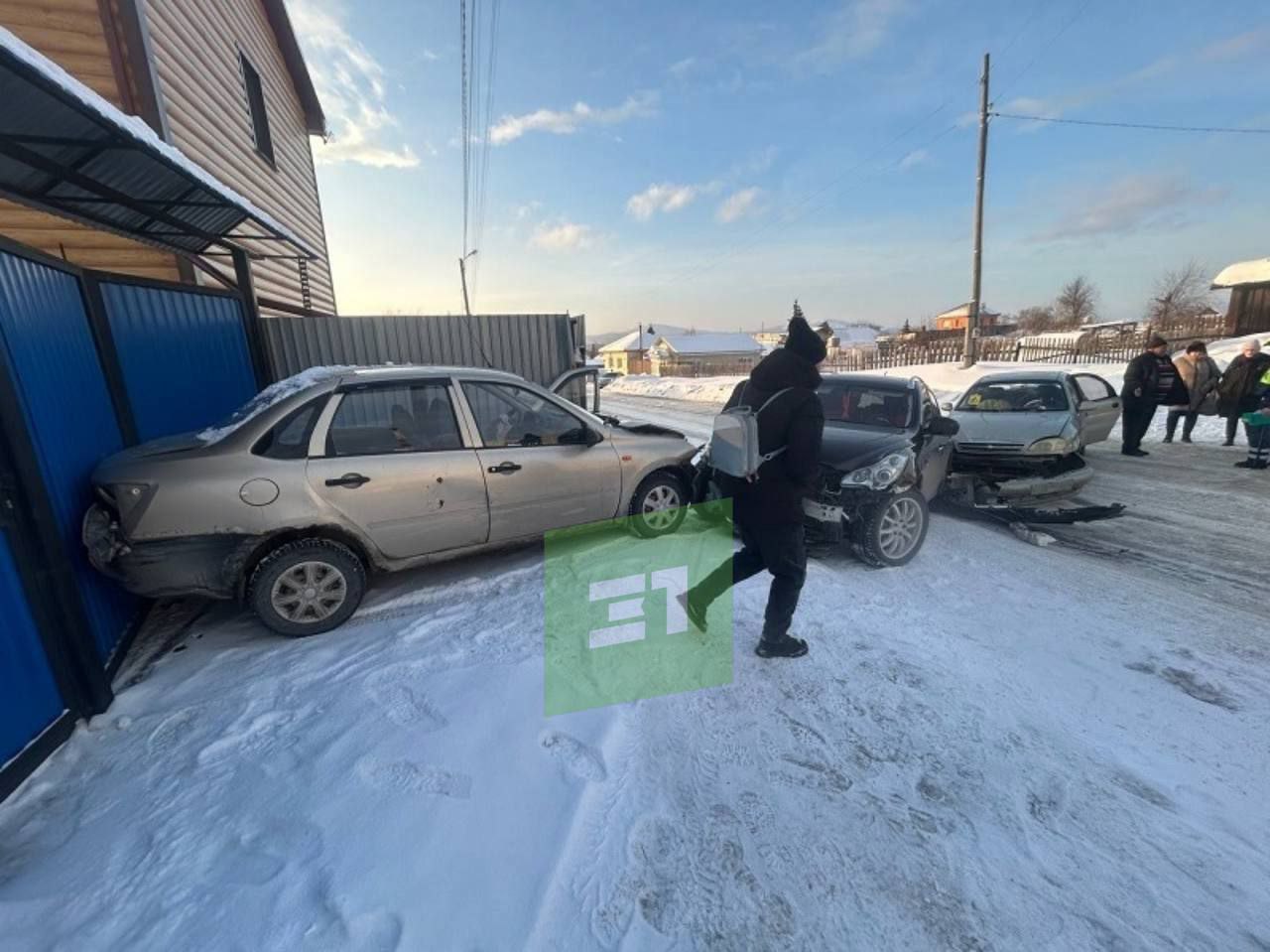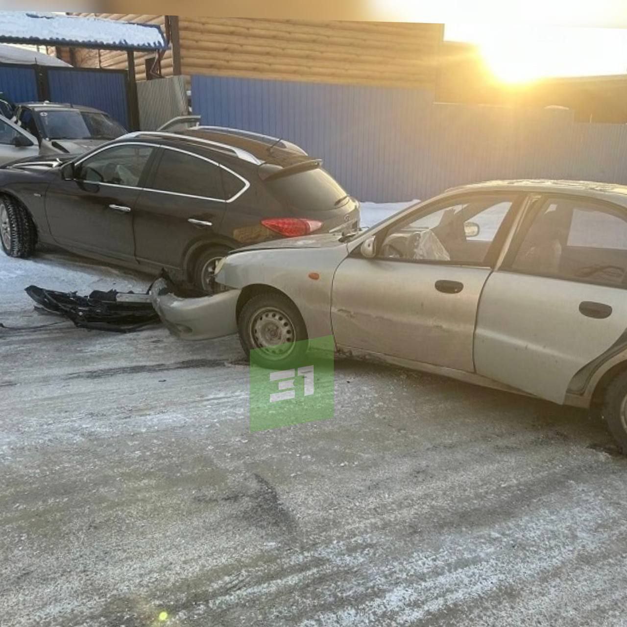 В Кыштыме столкнулись три легковушки. ГАИ: водитель Infiniti EX35 на большой скорости выехал на встречку и столкнулся с Lada Granta. Пострадал и Chevrolet Lanos.