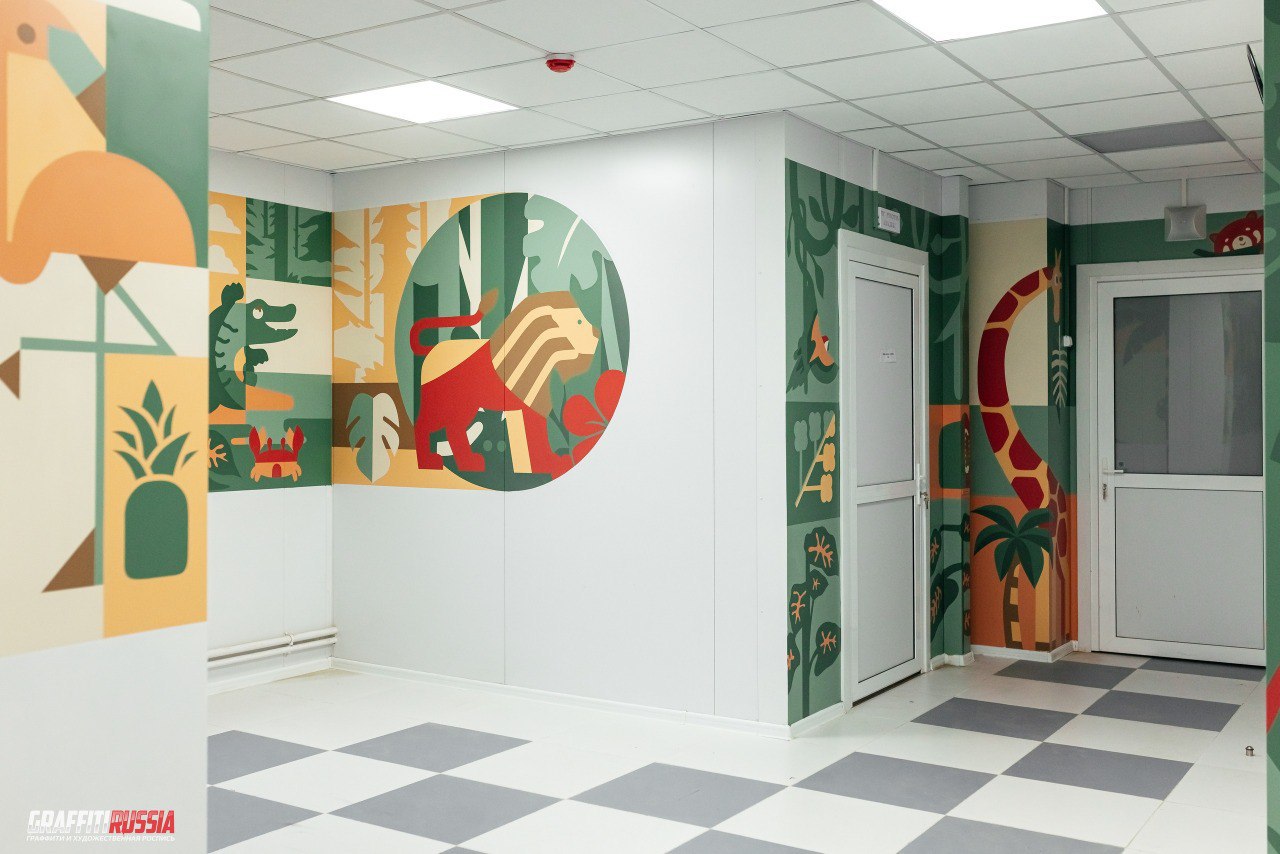 "Теперь стены "дышат" природой – мягкие листья, милые лесные жители и яркие джунгли создают атмосферу уюта и радости для маленьких пациентов. Это пространство, где даже лечение становится чуть легче, благодаря доброй энергии природы и волшебства", – отмечают в ассоциации "Graffiti Russia".