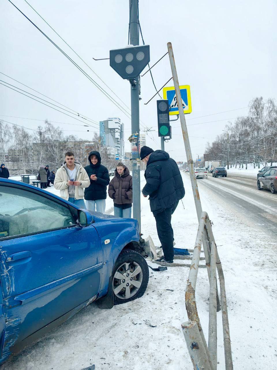 ДТП произошло на пр. Победы около ОКБ № 3. Повреждено ограждение. В машине сработали подушки безопасности.