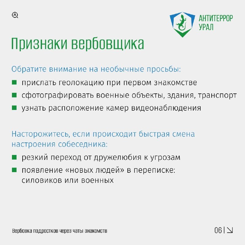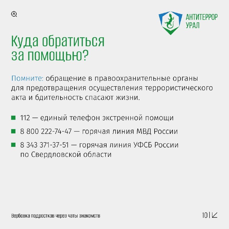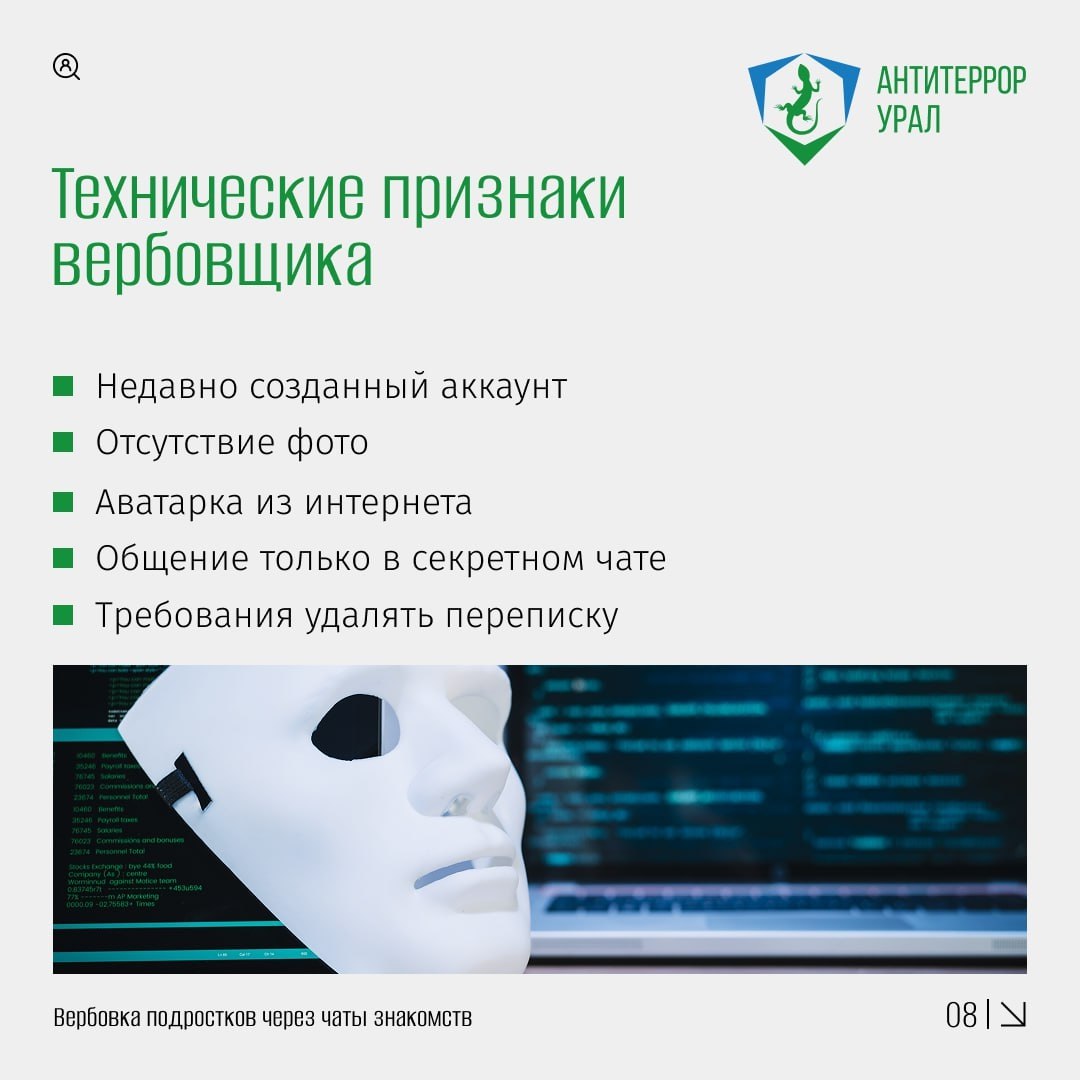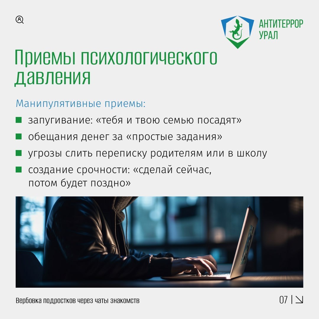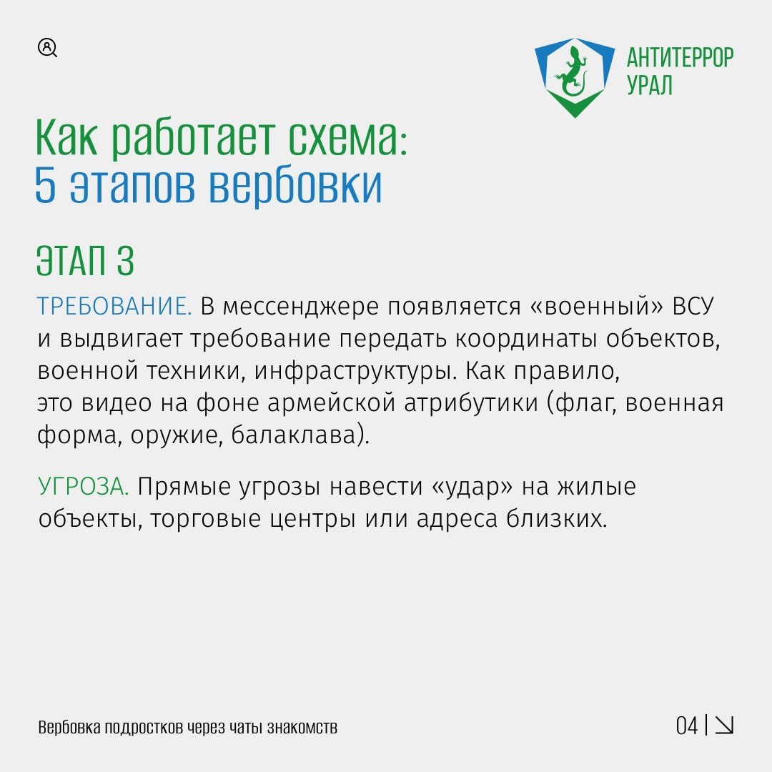 «Антитеррор Урал» подробно раскрыл эту преступную схему. Посмотрите информационные карточки и задайтесь вопросом: с кем переписываются ваши близкие?