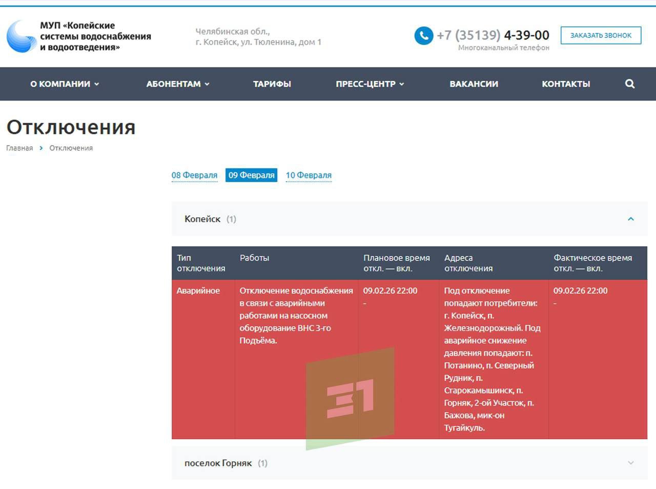 Плохая новость для жителей Копейска. Через полтора часа отключат воду.