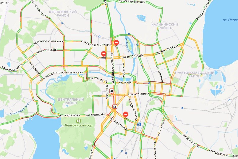 Спрашиваем, потому что открыли карту и увидели много красных полос, свидетельствующих о заторах. Популярные сервисы, кстати, оценивают пробки в 9 баллов из 10 возможных.