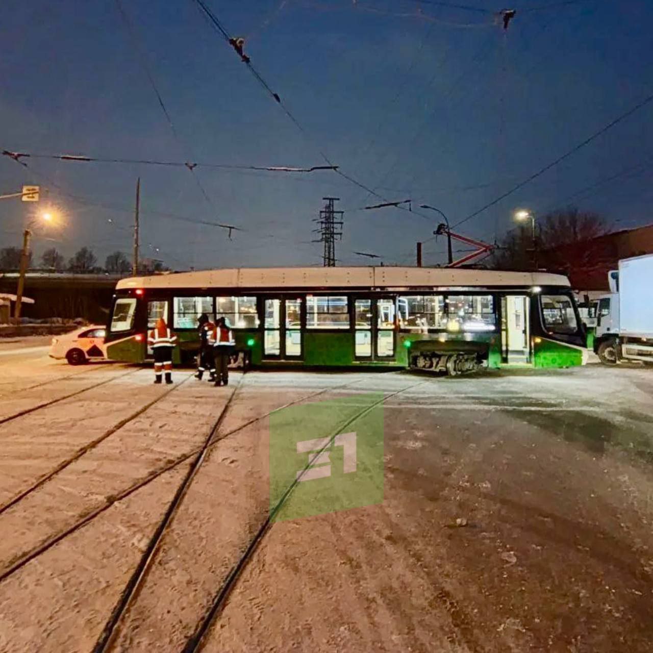 Почти на 2 часа остановилось движение вагонов около Депо №1 по ул. 1-й Пятилетки. ГАИ Челябинска: вагон сошел с рельсов и столкнулся с лековушкой. Пострадавших нет.