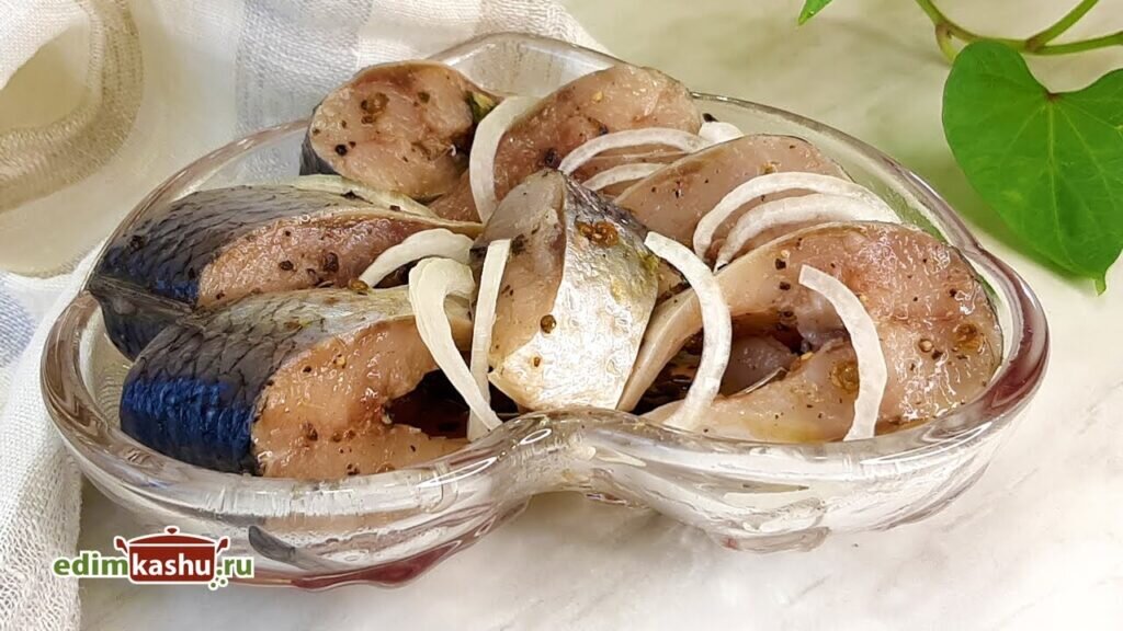 Через сутки рыба уже готова к подаче. По желанию можно добавить нарезанный лук — это усилит вкус и сделает блюдоCompleting более сочным. Приятного аппетита.