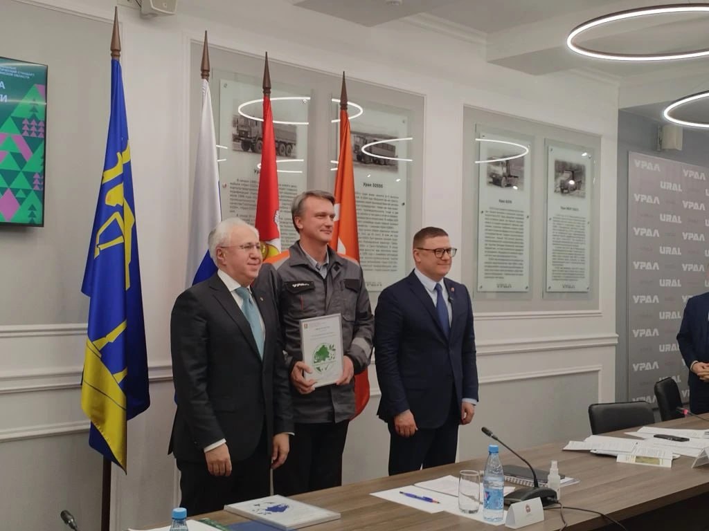 На заседании Экосовета в Миассе Алексей Текслер вручил Знак соответствия Экологическому стандарту техническому директору АО «Автомобильный завод «УРАЛ» Алексею Патрашкину и Знак присоединения к стандарту — директору Южно-Уральского федерального научного центра минералогии и геоэкологии УрО РАН Валерию Удачину.