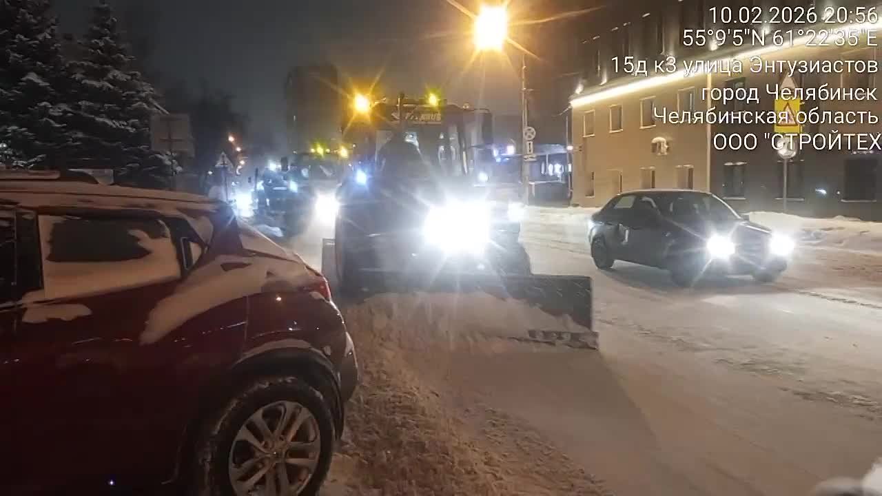 Мэрия показала ночную чистку улиц от снега в Челябинске