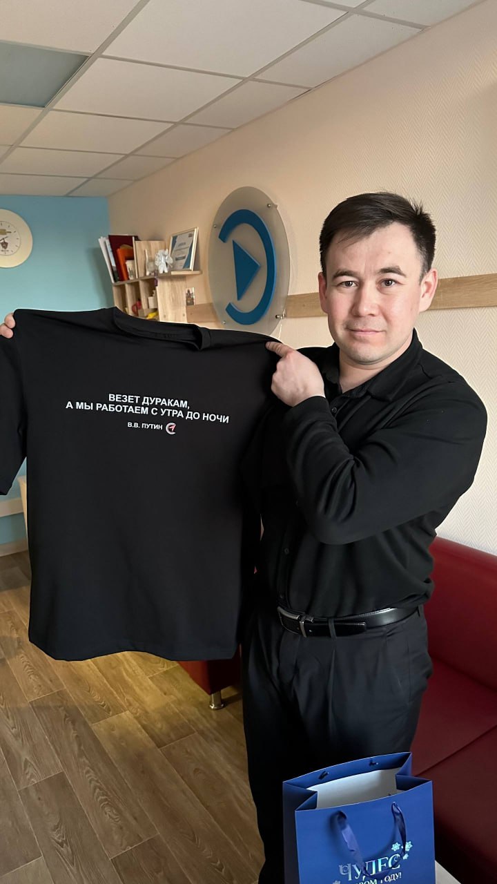 Вчера мы разыграли нашу фирменную футболку с цитатой Президента — и первый счастливчик уже носит её с гордостью! ( фото победителя )