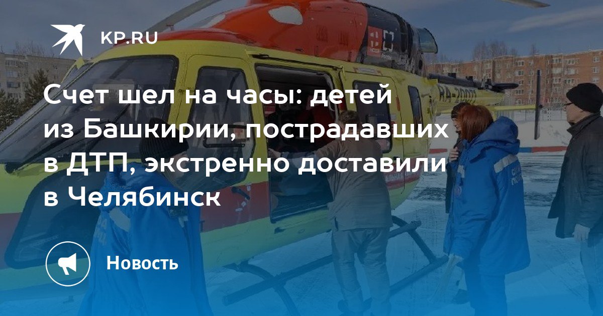 Троих детей, пострадавших в серьезном ДТП в Башкирии, экстренно доставили в Челябинск санитарной авиацией. Вертолет с маленькими пациентами приземлился в областном центре после перевода из Учалинской центральной районной больницы.