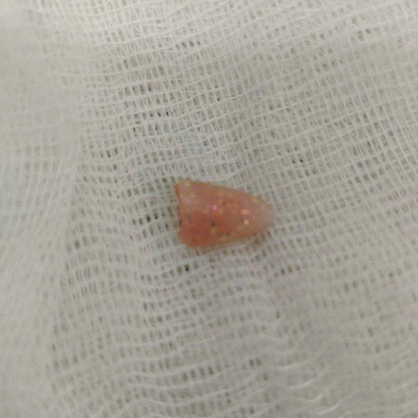 Мать ребенка думала, что он подавился собачьим кормом, однако врачи увидели, что в голосовой щели находится инородное тело, похожее на кость. Оно закрывало просвет на 4/5, воздух попадал в легкие только через маленькую щель.