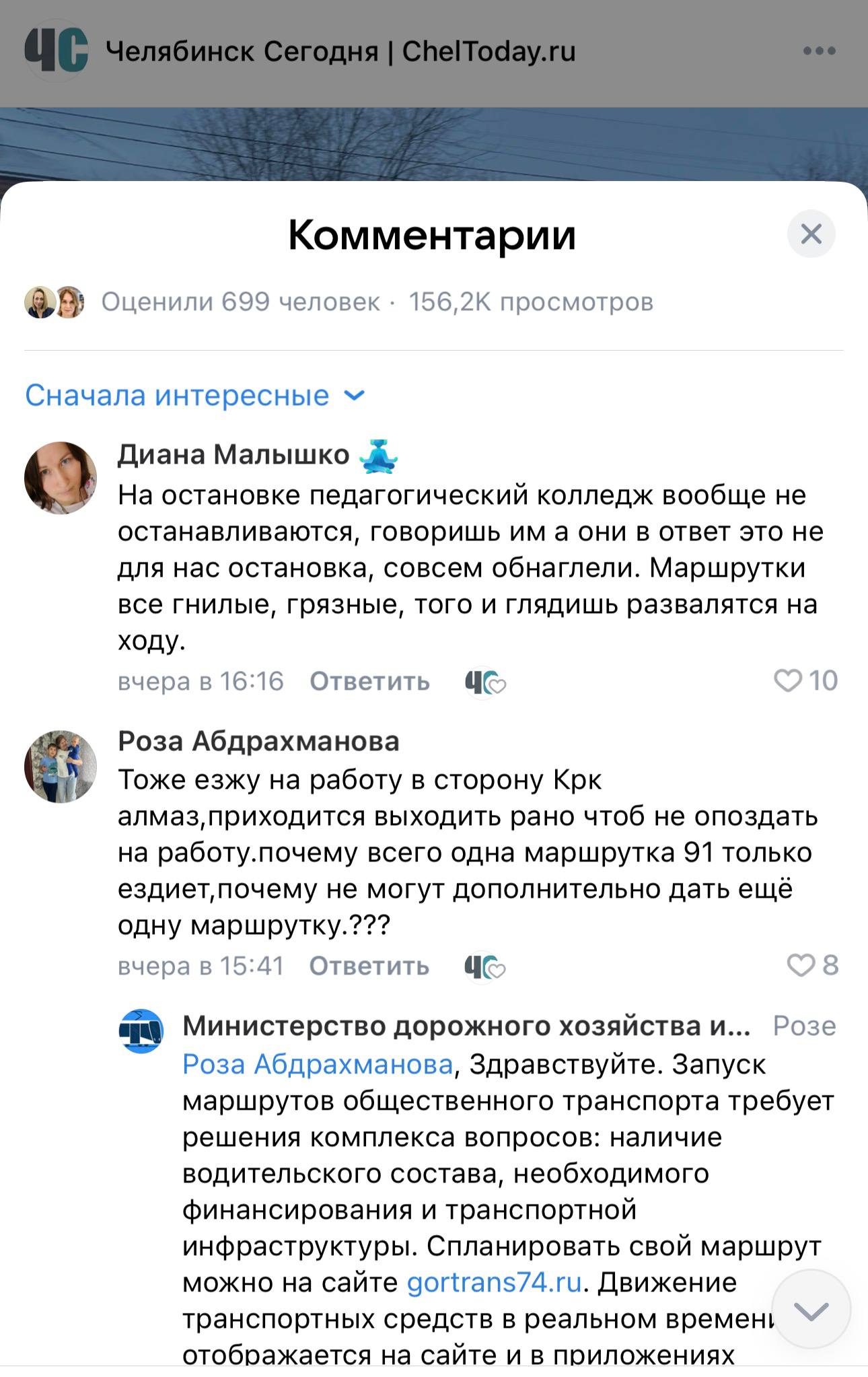 Массовые возмущения наблюдаются не только в сообществе «ЧелябинскСегодня» во «ВКонтакте», но и в других пабликах, где была опубликована эта история. Везде — более сотни комментариев. Отметим, что специалисты Министерства дорожного хозяйства и транспорта Челябинской области отвечают людям, однако не всех устраивают эти ответы.