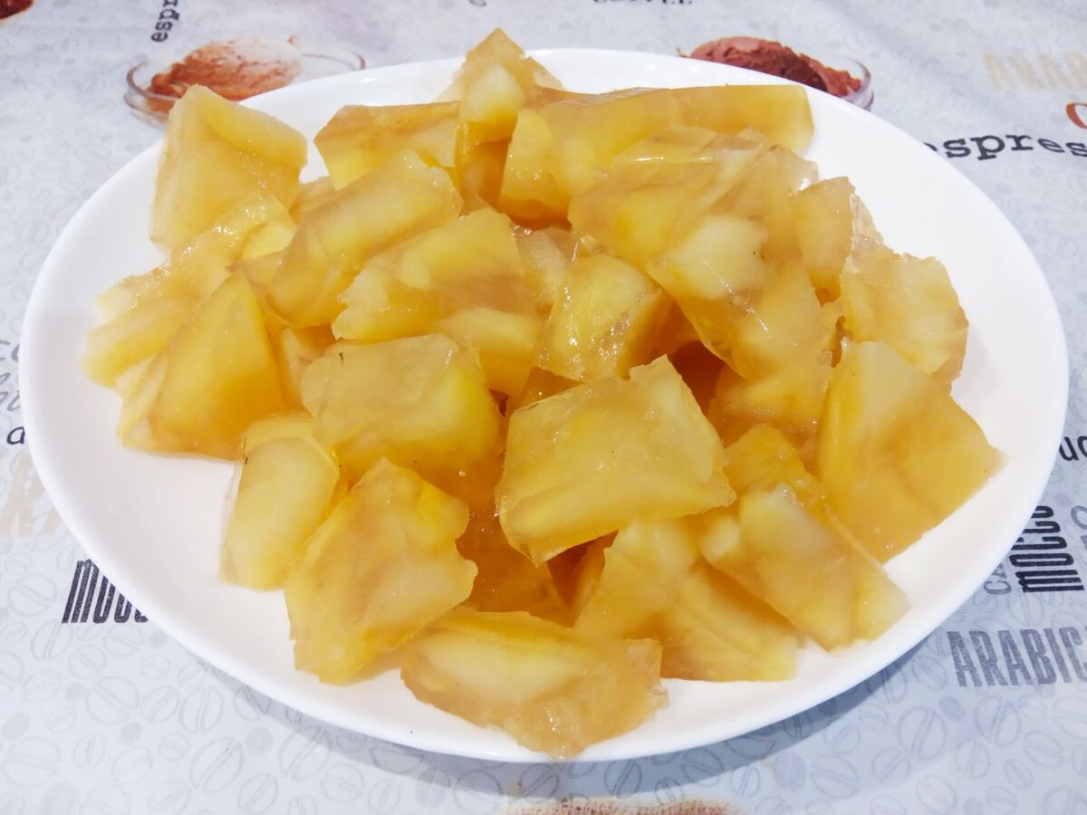 Желе стало отличным решением для использования оставшихся яблок, которые не слишком порадовали своим вкусом. В итоге получился изысканный десерт с нежными дольками фруктов, пропитанными сладким сиропом.