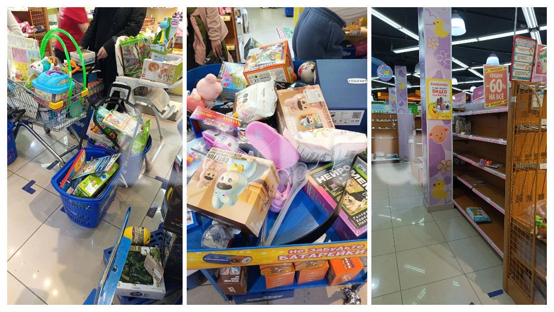 «Обслужить всех желающих продавцы не успевают, люди стоят в очереди по 6-7 часов. Те, кто не успевает оплатить до конца рабочего дня, оставляют тележки и записываются в специальный список», — рассказала одна из покупательниц.