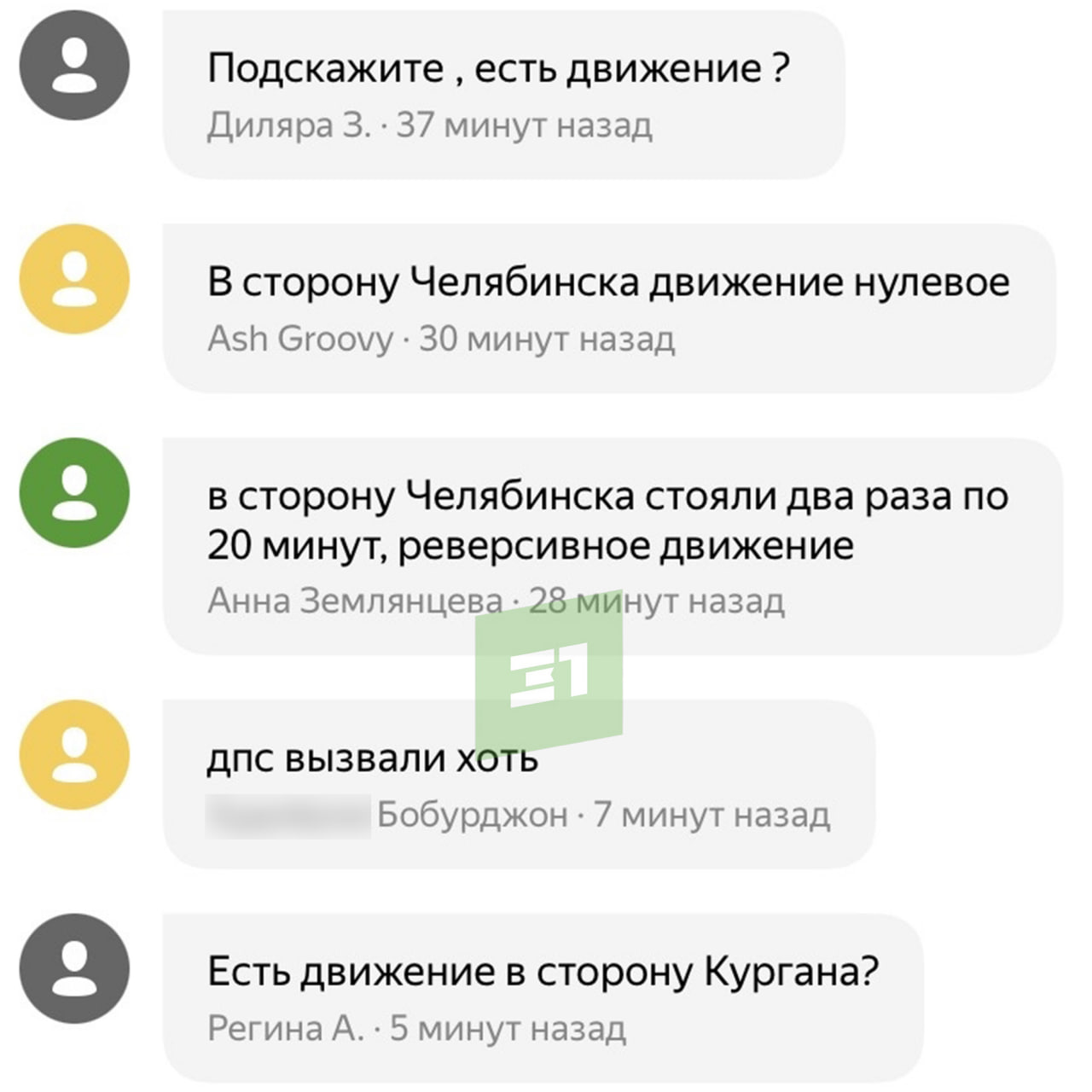 в сторону Челябинска: съезд на 42 км (на поселок Лазурный).
