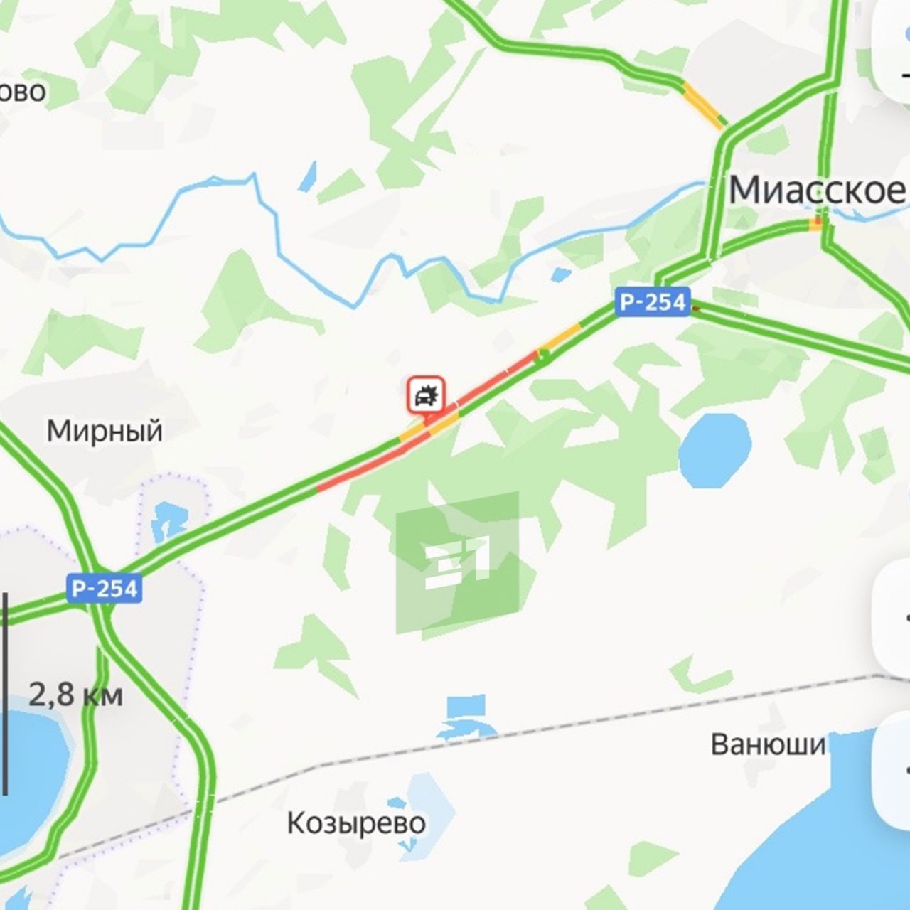 Огромный затор между Мирным и Миасским. По словам наших подписчиков, необходимо примерно час, чтобы там проехать.