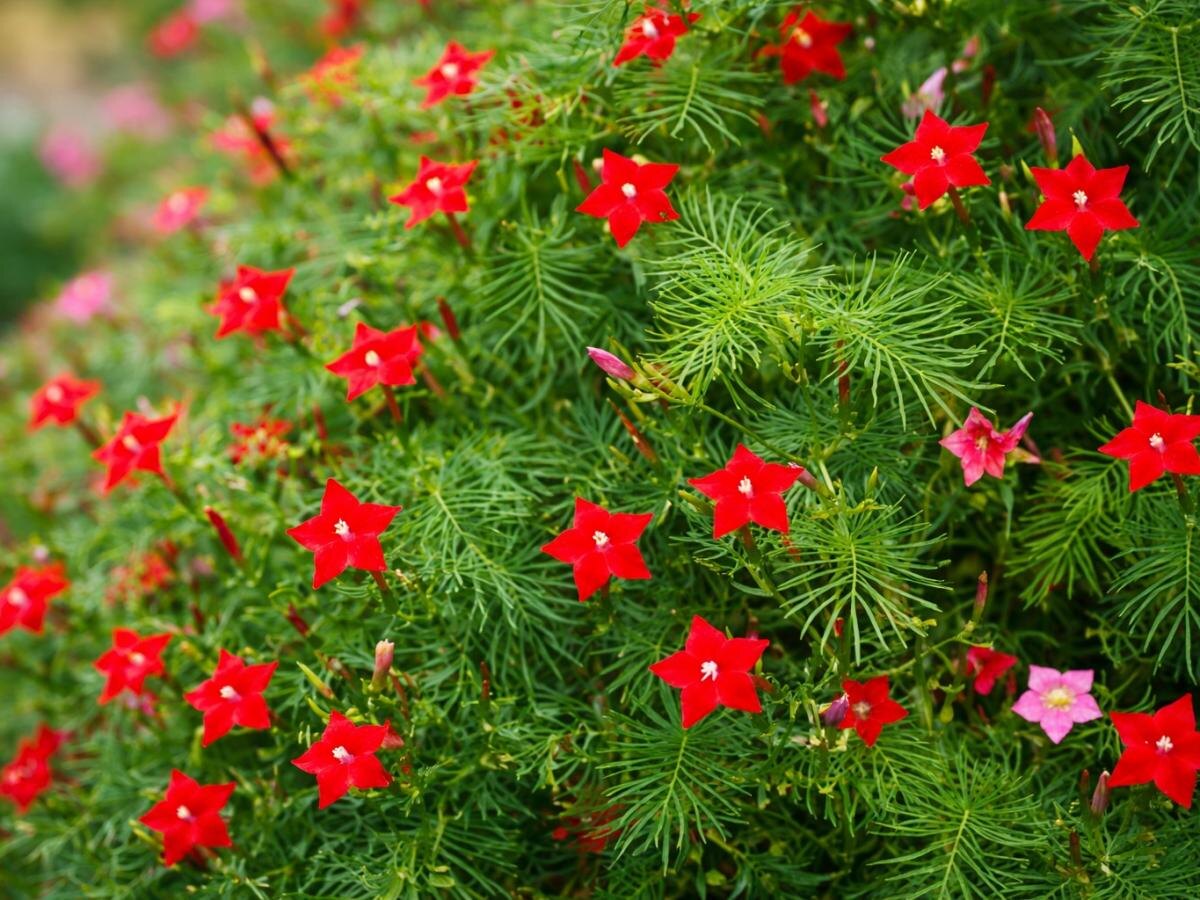 Кипарисовая лиана мгновенно привлекает внимание в любом саду благодаря своему уникальному сочетанию воздушной зелени и ярких цветов. Это растение стремительно разрастается, формируя живые ширмы и цветущие стены, которые способны преобразить участок уже за первый сезон. Квамоклит известен своей декоративностью, простотой в уходе и универсальностью в применении.