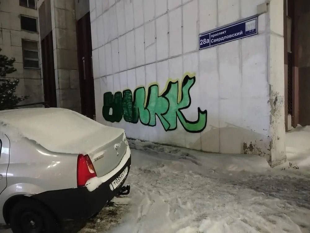 Уличному художнику понравился фасад многоэтажки на перекрестке пр. Победы и Свердловского пр.