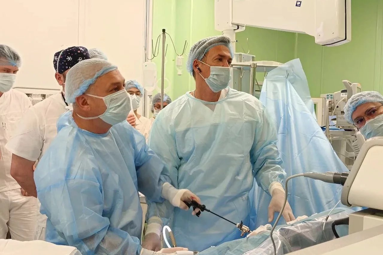 "Сначала мы сделали цистоскопию – зашли ему инструментом в мочевой пузырь, чтобы увидеть, где находится устье правого мочеточника, и мы его не увидели. Такое бывает, когда это устье открывается непосредственно в дивертикул, или когда оно находится на границе мочевого пузыря и дивертикула. Когда мы таких пациентов оперируем, мы не можем просто взять и иссечь этот мешок. Нам нужно учитывать, что там рядышком где-то находится еще и мочеточник. Поэтому диагностический процесс оказался весьма непростым", – рассказал Сергей Кокнаев.