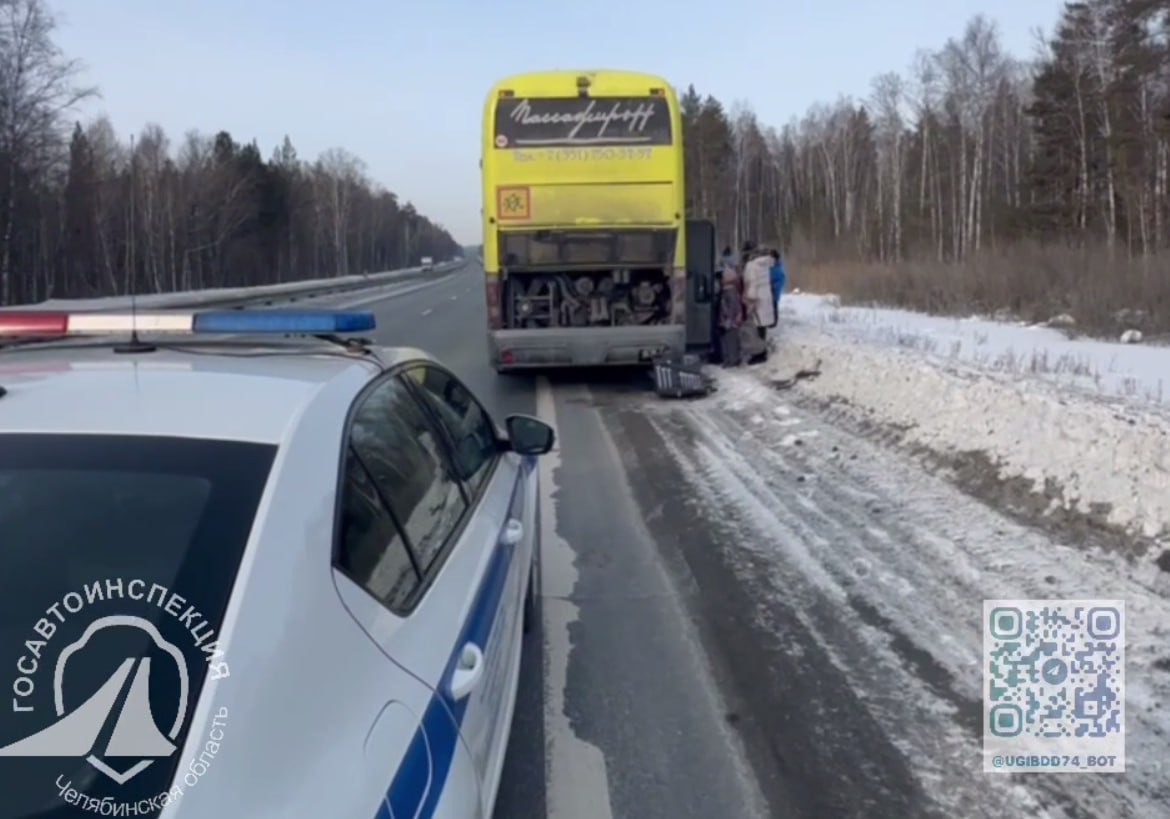 Автобус остановился на 1789 километре дороги «Москва — Челябинск» из-за технической неисправности. Проезжавшие этот участок трассы сотрудники ДПС заметили стоящий на обочине транспорт и остановились для оказания помощи.