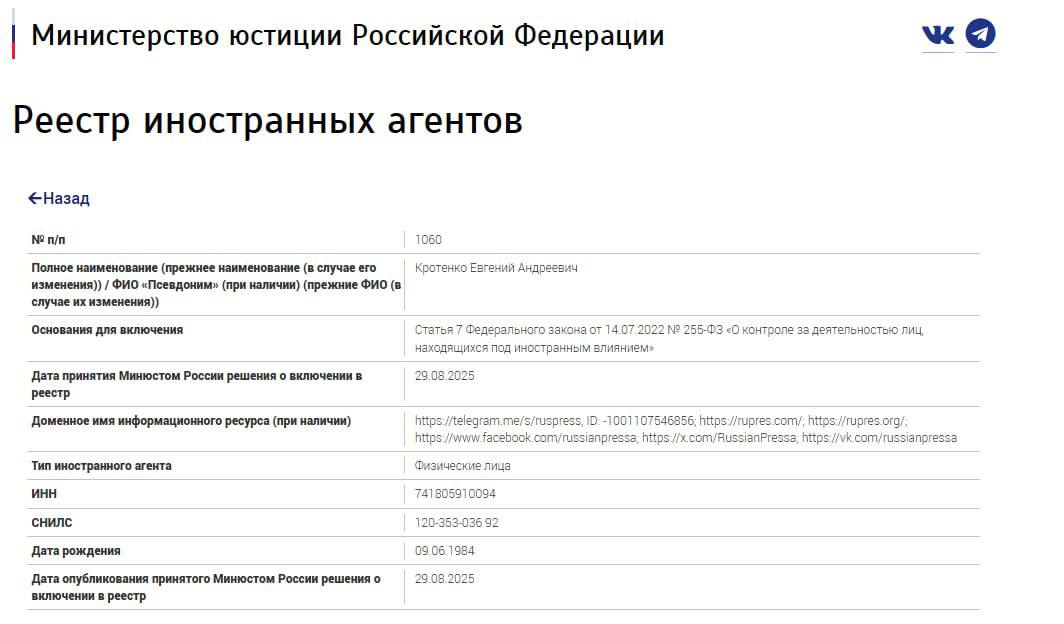 Напомним, Сергея Шумакова и Евгения Кротенко* обвиняют в вымогательстве крупной суммы денег группой лиц по предварительному сговору. По версии следствия, Сергей Шумаков передал 300 тысяч рублей родственницам иноагента Евгения Кротенко*, который в последние годы не проживает РФ. Цель передачи денег – сокрытие информации в телеграм-канале Кротенко*.