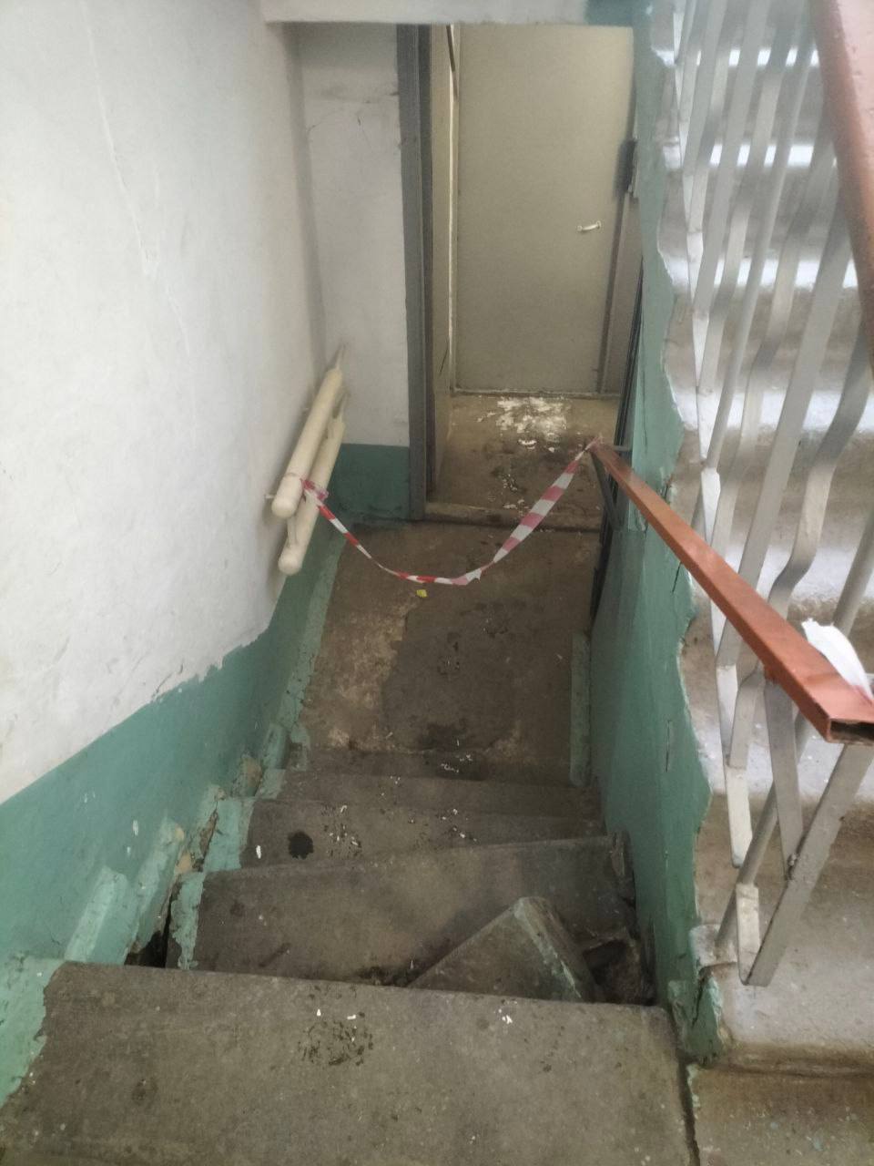 После жалоб на обвалившиеся ступеньки "Мой дом Урал" все-таки отреагировал. На место отправили находчивых рабочих. Судя по их логике, ходить по лестнице опасно. Но по-другому пройти в свою квартиру невозможно.