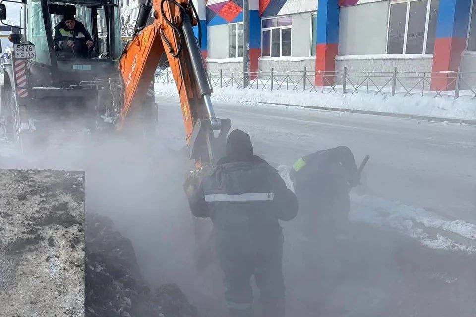 В Карабаше пытаются устранить аварию, которая оставила без отопления 31 многоквартирный дом и два соцучреждения. На месте прорыва теплотрассы работают 11 человек, три спецмашины.