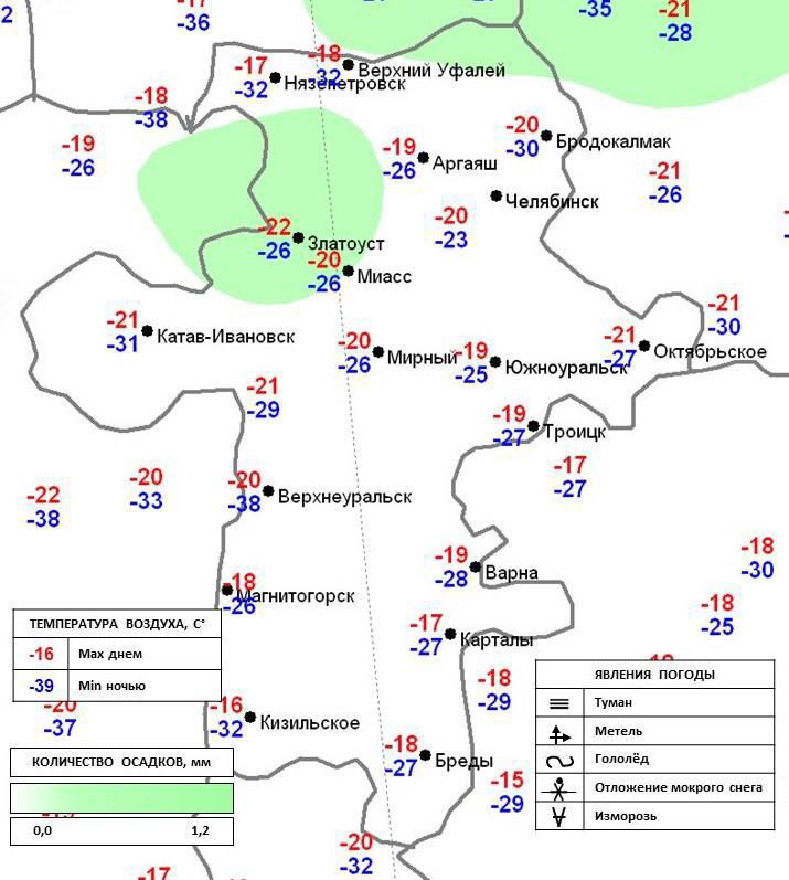 Ниже 30 градусов температура опустилась в Кизильском (-32), Катав-Ивановске (-31), Нязепетровске и Верхнем Уфалее (-32).
