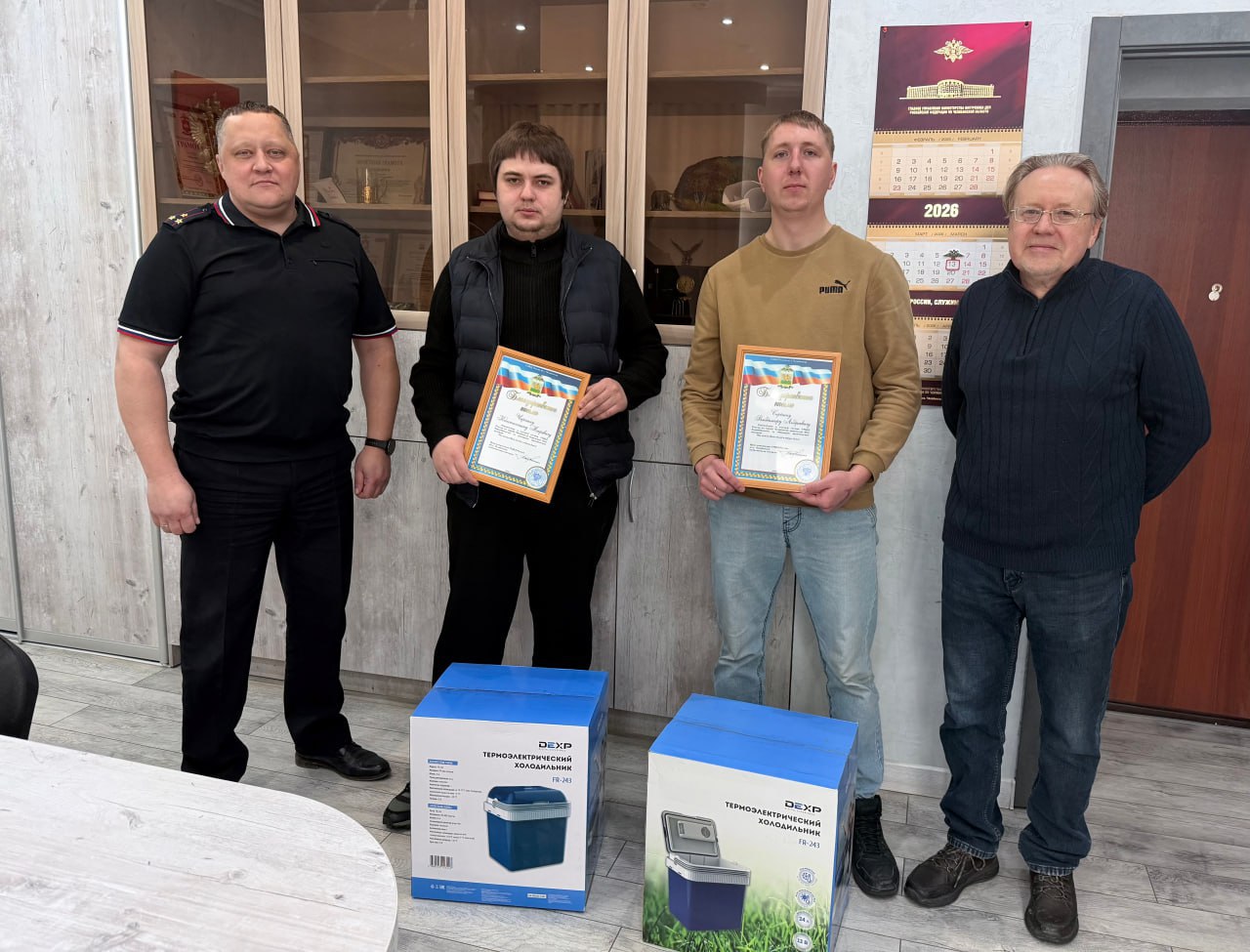 В Управлении МВД России по городу Челябинску наградили двух горожан, которые помогли остановить аферистов и сохранили деньги пожилых людей. Заместитель начальника городской полиции полковник Михаил Власов и представитель Общественного совета при УМВД Михаил Стерехов вручили благодарности Константину Чиркину и Ивану Серегину.